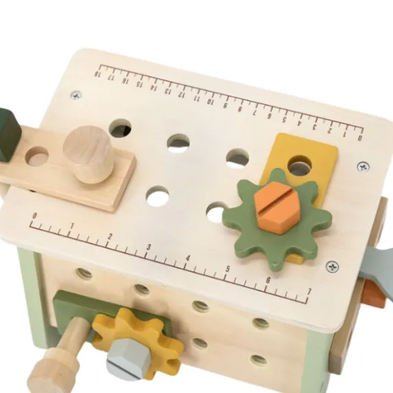 Acest banc de lucru pentru copii ajută la învățarea denumirilor uneltelor și utilizării lor, dezvoltând totodată motricitatea fină, coordonarea ochiilor și mâiniilor, gândirea și imaginația. Bancul este potrivit pentru educația bazată pe metoda Reggio și este recomandat pentru jocurile de dezvoltare în grădinițe și centre educaționale.