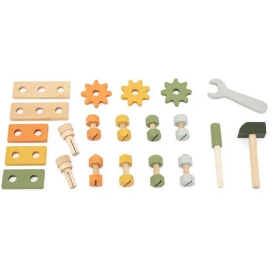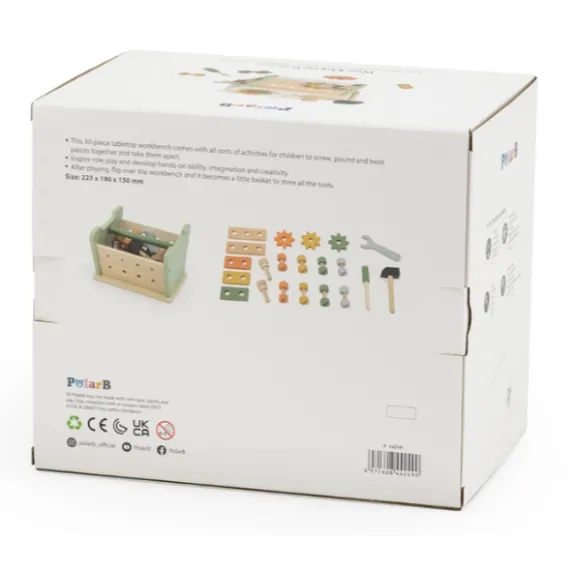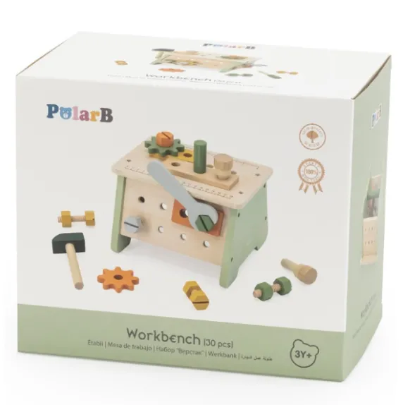 Oferiți-i copilului dvs. un banc de lucru din lemn cu unelte PolarB pentru a se simți ca un adevărat meșteșugar! Setul este realizat integral din lemn și include toate accesoriile necesare pentru o joacă captivantă. Copilul poate să bată cuie cu ciocanul, să strângă șuruburi cu cheia și să fixeze plăci și rotițe din lemn pe bancul de lucru.