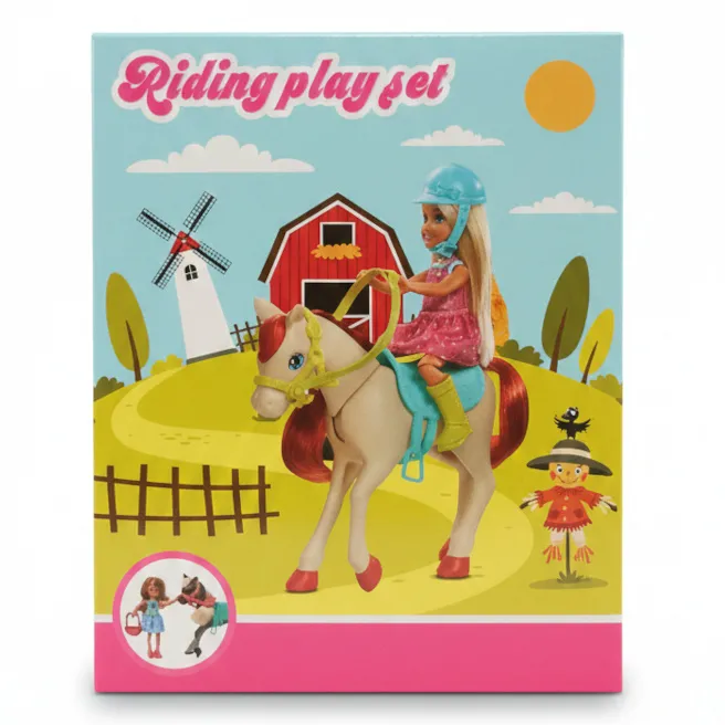 Elementele centrale ale setului sunt o păpușă călăreață în costum tematic și un cal cu un design realist, care poate fi pieptănat și pe care se poate pune o șa detașabilă. Setul include accesorii suplimentare, cum ar fi un pieptene, o găleată și un bol pentru hrană. Jocul cu acest set dezvoltă empatia și grija în îngrijirea calului, stimulează imaginația și abilitățile de vorbire prin inventarea de povești și antrenează excelent motricitatea fină atunci când se lucrează cu figurine și obiecte mici.