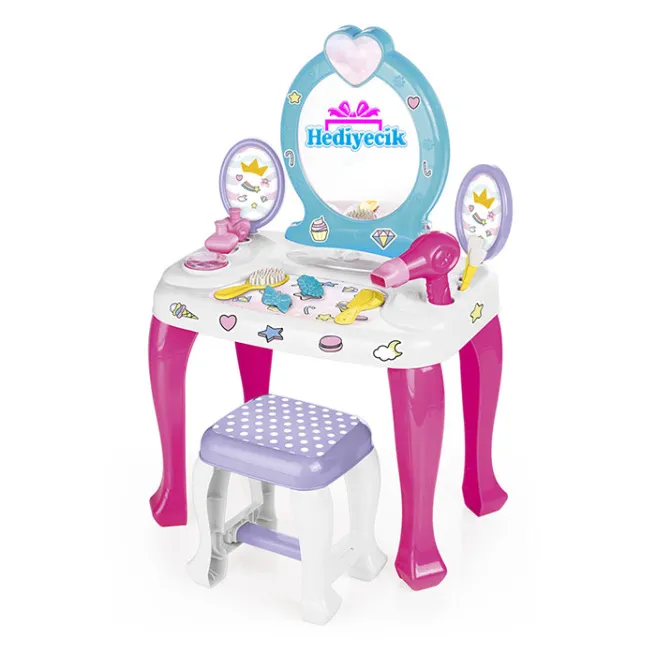 Setul Dolus magic de măsuță de toaletă cu scăunel este o măsuță de toaletă fermecătoare care cu siguranță va încânta fiecare mică prințesă. Setul este format dintr-o măsuță de toaletă și un taburet asortat care oferă un loc confortabil pentru a sta în timpul jocului. Măsuța de toaletă este dotată cu o oglindă, care îi permite micuțului dvs. să își vadă stilul, și cu rafturi pe care poate aranja o varietate de accesorii de machiaj și bijuterii.