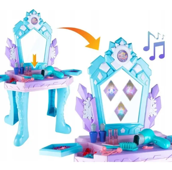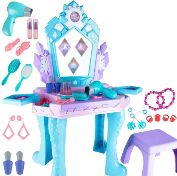 Creează o lume de basm pentru copilul tău cu măsuța de toaletă cu oglindă și accesorii!