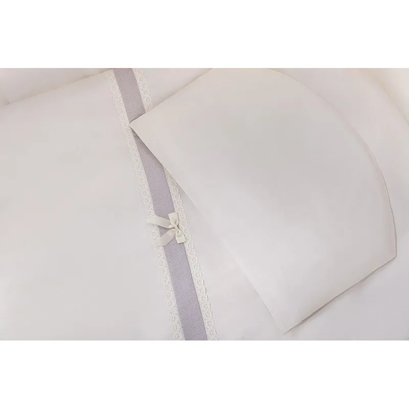 Două cearșafuri de dimensiuni diferite și un perete de protecție care se pot folosi și pentru pat de tip transformer. Special conceput pentru pătuțuri rotunde și ovale. Perna și plapuma sunt rotunjite.