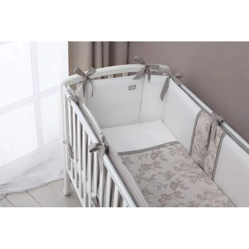 Peretele protector din acest set acoperă doar o parte din perimetru, datorită acestui fapt este mai universal în utilizare și potrivit pentru pătuțuri de diferite dimensiuni. Colțurile sunt rotungite pentru un plus de siguranță, iar benzile care fixează peretele protector de pătuc pot suporta o tensiune chiar puternică, oricît de tare nu ar trage copilul de el, iar pentru a-și păstra bine forma ,s-a folosit umplutura Hollcon (Holklon). Husele peretelui de protecție sunt detașabile, deci le puteți spăla cu ușurință doar partea exterioară fără a afecta umplutura interioară.