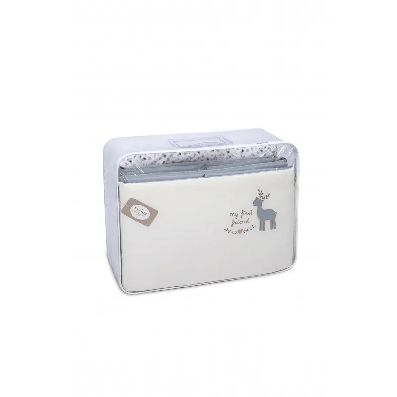 Setul elegant Perina Little Forest este potrivit pentru orice tip de interior, are nuanțe naturale și culori pastelate care oferă confort și rafinețe. Texturile diferite ale lenjeriei de pat și ale laturilor formează o combinație interesantă ce oferă libertate imaginației.