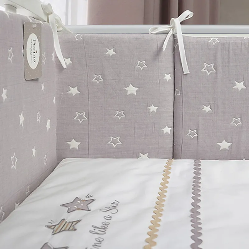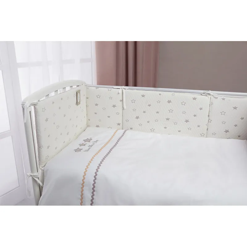 Setul elegant Perina Toys Stele este potrivit pentru orice tip de interior, are nuanțe naturale și culori pastelate care oferă confort și rafinețe. Texturile diferite ale lenjeriei de pat și ale laturilor formează o combinație interesantă ce oferă libertate imaginației.