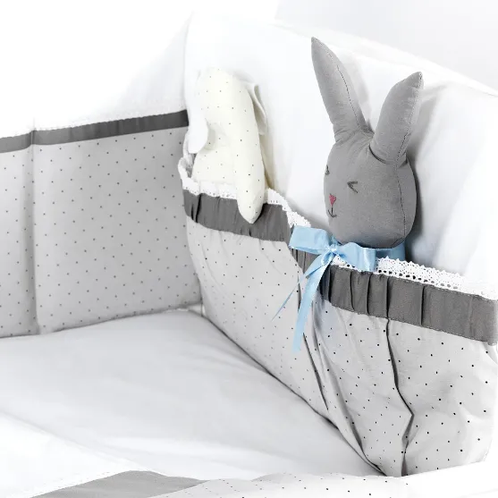 Lenjerie de pătuț 8 piese PernaMea Renaissance Buline Gri