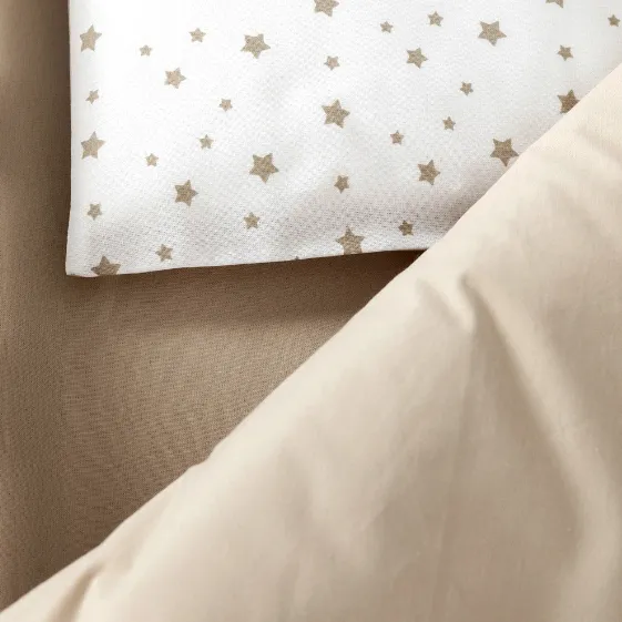 Cearsaf de pat: 120x60 cm (1 buc.), Cearsaf de plapumă: 120x90 cm (1 buc.), Fată de pernă ortopedică: 30x25 cm (1 buc.), Fată de pernă pentru copil: 50x30 cm (1 buc.), Plapumă: 120x90 cm (1 buc.), Pernă ortopedică: 30x25 cm (1 buc.), Pernă pentru copil: 50x30 cm (1 buc.), Aparatori: 60x35 cm (6 buc.)