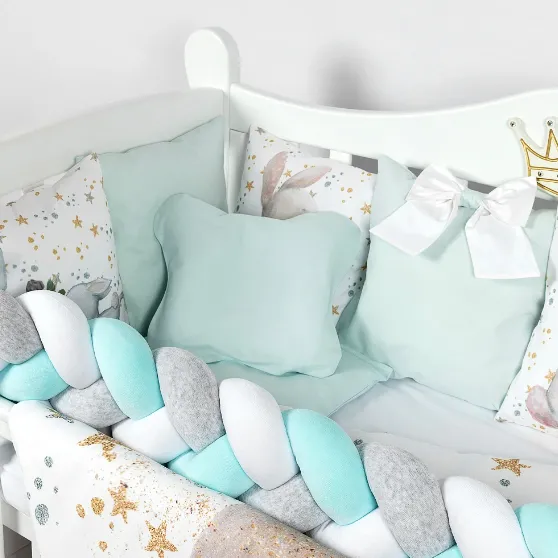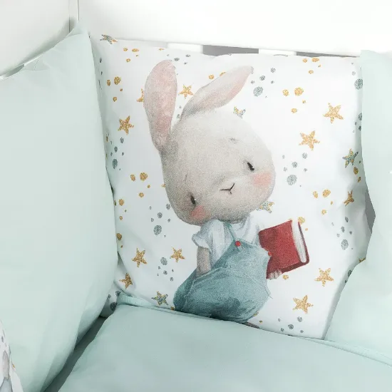 Lenjerie de pătuț 8 piese PernaMea Cosiță Iepuraș Turcoaz