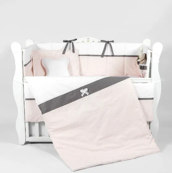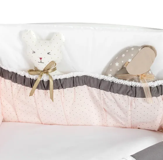 Lenjerie de pătuț 8 piese PernaMea Renaissance Buline Roz