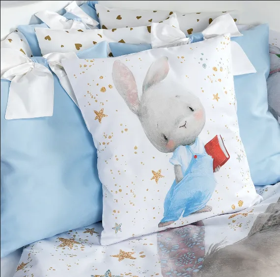 Transformă pătuțul copilului într-un loc de poveste cu setul de lenjerie PernaMea Premium Iepuraș Albastru!