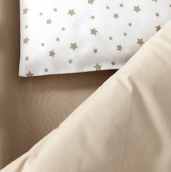 Oferă-i micuțului tău un somn liniștit și confortabil cu acest set de lenjerie decorat cu un design delicat de stele și o cromatică pastelată maro. Ideal pentru camera oricărui bebeluș, acest set aduce un plus de eleganță și funcționalitate pătuțului.