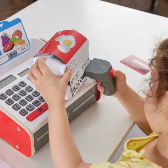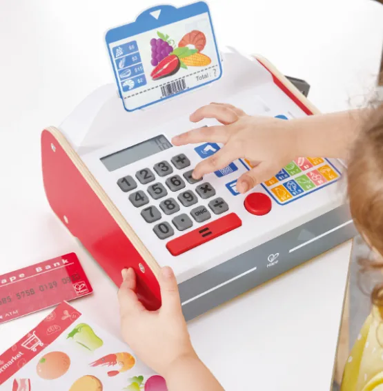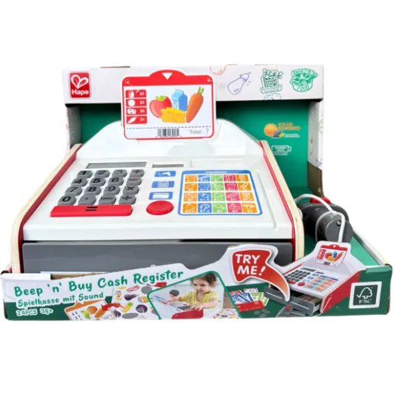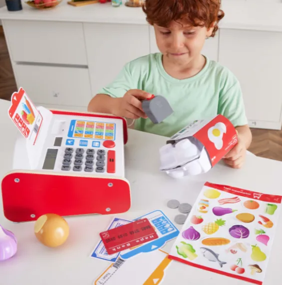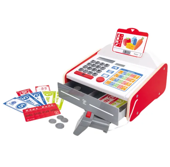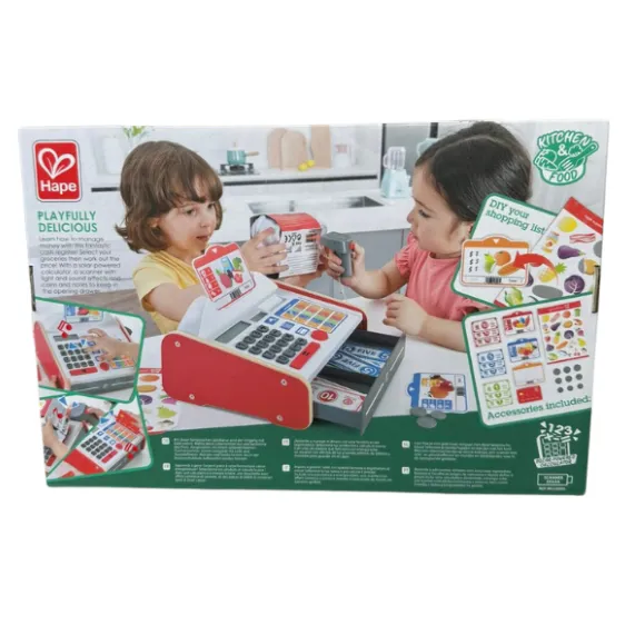 Învățați cum să gestionați banii cu acest fantastic registru de casă! Alegeți produsele, apoi calculați prețul! Setul include un calculator solar, un scanner cu efecte de lumină și sunet, monede și bancnote pentru a le păstra în sertar.