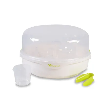 Sterilizatorul Fresh pentru microunde este o soluție practică și eficientă pentru igienizarea biberoanelor și accesoriilor. Compact, ușor și rapid, este ideal pentru utilizarea zilnică acasă sau în călătorii. Poate steriliza până la 5 biberoane simultan, fiind compatibil cu majoritatea cuptoarelor cu microunde.
