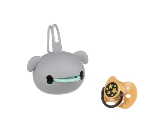 Suportul pentru suzetă în formă de cap de cățeluș este ideal pentru depozitarea și transportarea suzetelor în timpul plimbărilor sau călătoriilor. Datorită dimensiunilor sale compacte, încape ușor într-o geantă, rucsac sau buzunar. Un mâner special permite atașarea comodă la cărucior, pătuț sau scaun auto. Suportul poate conține 2 suzete. Culorile neutre se potrivesc oricărui cărucior și genți.