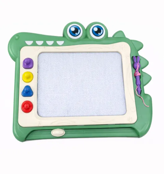 O tablă magnetică colorată și captivantă în formă de dinozaur, care transformă desenul într-o joacă plină de distracție
