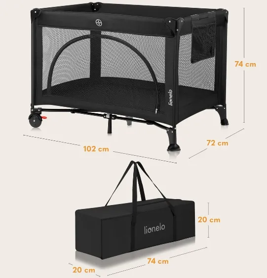 Lionelo Laura este un pătuț compact cu funcție de țarc, creat special pentru locuințe mai mici și pentru economisirea spațiului. Este suficient de spațios și complet funcțional, dar ușor mai scurt – încape acolo unde nu este loc pentru un pătuț mai mare și este ușor de manevrat. Ușor și comod de transportat (în geanta inclusă).