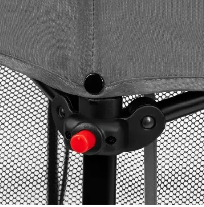 Pereții parcului Roel sunt bazați pe un material transparent și ușor, care asigură un flux adecvat de aer și monitorizarea continuă a copiilor. Partea superioară a tarcului, cu îmbinările sale metalice pentru pliere și desfășurare, a fost asigurată cu un panou flexibil larg responsabil pentru consolidarea stabilității structurii și prevenirea potențialelor răniri în timpul jocului. Tapiteria detasabila se poate spala in masina de spalat rufe.