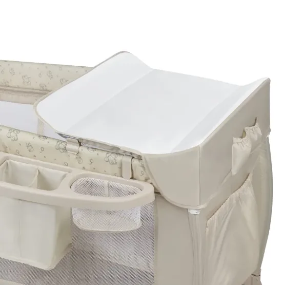 Organizator util. Organizatorul robust cu trei compartimente, atașat pe lateralul pătuțului, ajută la menținerea lucrurilor esențiale bine organizate și ușor accesibile, astfel încât cele mai importante obiecte să fie mereu la îndemână. Pătuțul dispune și de buzunare suplimentare practice, ideale pentru depozitarea jucăriilor.