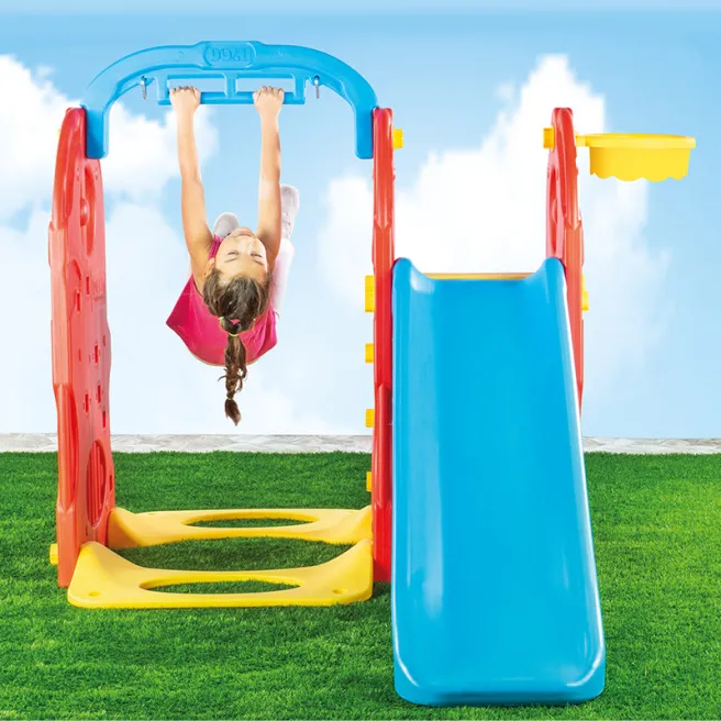 • copiii vor fi fericiți să meargă pe tobogan, să urce pe treptele antiderapante și să joace baschet, aruncând o minge în cerc.