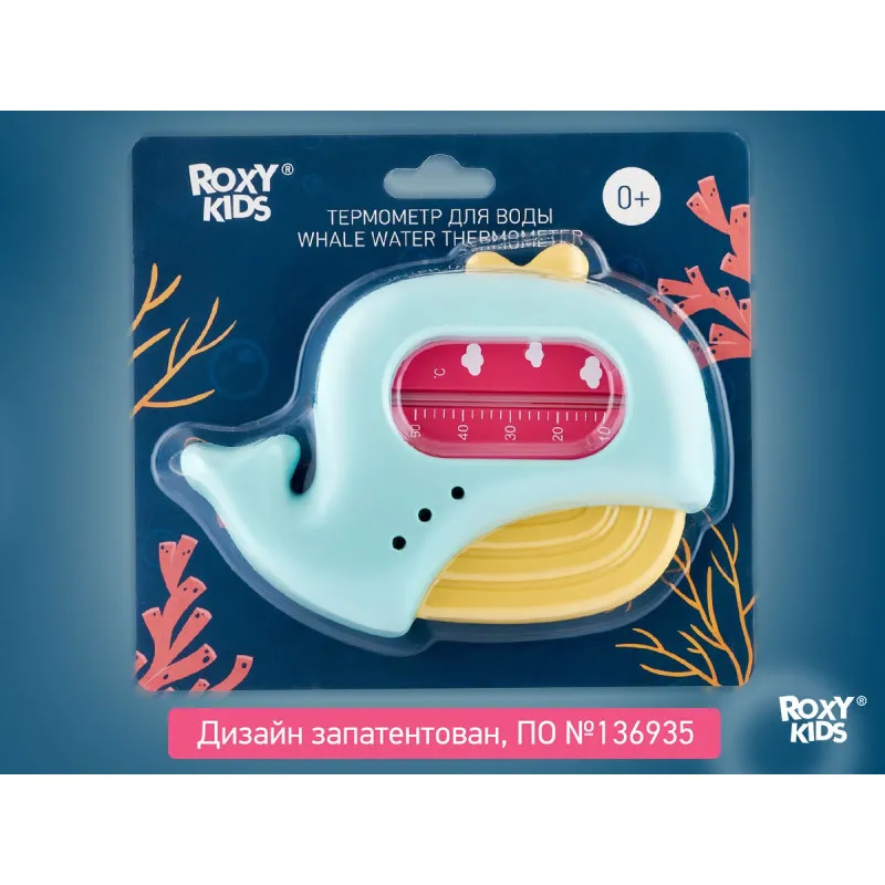 Termometru pentru apa Roxy Kids „Whale”, Albastru+galben (RWT-007-BY)