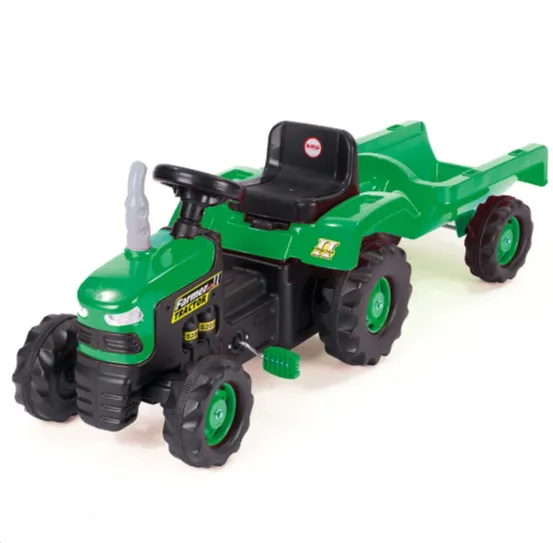 Remorca din spate oferă posibilitatea de a transporta jucării, nisip sau alte obiecte, stimulând jocul de rol și imaginația. Construcția robustă și roțile stabile asigură o utilizare sigură pe diferite suprafețe, atât în curte, cât și în spații interioare mai mari.