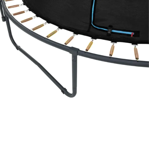 Cadrul este realizat din oțel galvanizat cu acoperire cu pulbere, protejând împotriva ruginii și coroziunii. Trambulina este echipată cu o plasă de protecție rezistentă la intemperii, un covoraș de sărituri și o husă pentru arcuri, făcând-o ideală pentru utilizare pe tot parcursul anului.