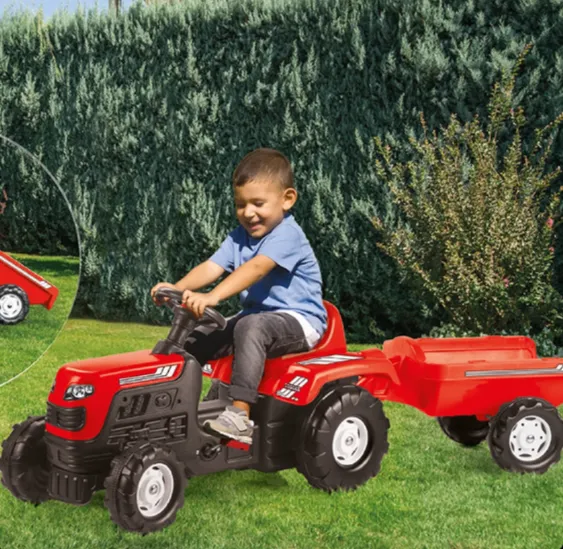 Acest tractor cu pedale permite copilului să se deplaseze singur, contribuind la dezvoltarea coordonării și a forței musculare într-un mod natural și distractiv.
