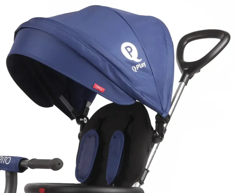 Viata moderna ne invata sa fim practici, iar parintii trebuie sa se adapteze cerintelor vietii urbane.Tricicleta QPlay Rito este solutia ideala pentru viata alaturi de bebe. Compacta si usor de utilizat, Rito ofera o experienta deosebita in timpul plimbarilor in parc sau prin oras.Tricicleta multifunctionala Rito poate fi folosita de la 12 luni la 3 ani. Design-ul deosebit ofera micutilor plimbari sigure si confortabile, iar sistemul de pliere compact o transforma in tricicleta ideala.Confortul copilului este asigurat de husa moale care imbraca sezutul si spatarul. Spatarul tricicletei se inclina pentru a-i oferi micutului o pozitie confortabila in timpul somnului. Siguranta copilului este oferita de centurile de siguranta in 5 puncte si de bara de protectie ce nu ii vor permite acestuia sa cada din tricicleta in timpul deplasarii.Cadrul este fabricat dintr-un metal usor pentru o manevrabilitate facila iar culoarea negru mat va scoate in evidenta designul modern al tricicletei.Copertina il va proteja de soare, vant sau praf. Este dotata cu plasa in partea din spate pentru a permite aerisirea si supraveghere copilului.Tricicleta Rito este echipata cu roti din cauciuc plin (foarte utile pentru orice tip de teren, in special in cazul suprafetii de rulare denivelate), frana si aparatoare de noroi. Tija de directie ii permite parintelui sa dirijeze tricicleta cu o singura mana.