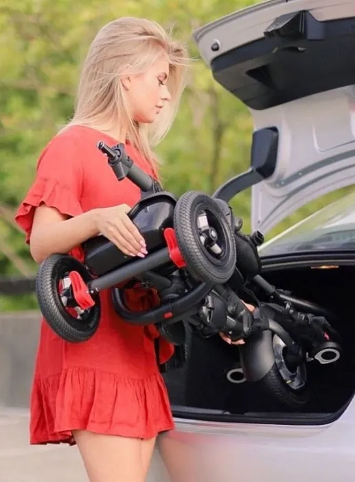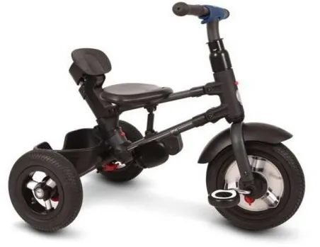 Viata moderna ne invata sa fim practici, iar parintii trebuie sa se adapteze cerintelor vietii urbane.Tricicleta QPlay Rito este solutia ideala pentru viata alaturi de bebe. Compacta si usor de utilizat, Rito ofera o experienta deosebita in timpul plimbarilor in parc sau prin oras.Tricicleta multifunctionala Rito poate fi folosita de la 12 luni la 3 ani. Design-ul deosebit ofera micutilor plimbari sigure si confortabile, iar sistemul de pliere compact o transforma in tricicleta ideala.Confortul copilului este asigurat de husa moale care imbraca sezutul si spatarul. Spatarul tricicletei se inclina pentru a-i oferi micutului o pozitie confortabila in timpul somnului. Siguranta copilului este oferita de centurile de siguranta in 5 puncte si de bara de protectie ce nu ii vor permite acestuia sa cada din tricicleta in timpul deplasarii.Cadrul este fabricat dintr-un metal usor pentru o manevrabilitate facila iar culoarea negru mat va scoate in evidenta designul modern al tricicletei.Copertina il va proteja de soare, vant sau praf. Este dotata cu plasa in partea din spate pentru a permite aerisirea si supraveghere copilului.Tricicleta Rito este echipata cu roti din cauciuc plin (foarte utile pentru orice tip de teren, in special in cazul suprafetii de rulare denivelate), frana si aparatoare de noroi. Tija de directie ii permite parintelui sa dirijeze tricicleta cu o singura mana.