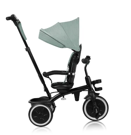 Mânerul ajustabil, care poate fi reglat între 82 și 100 cm, se adaptează la înălțimea îngrijitorului, asigurând o utilizare confortabilă. Sistemul de direcție din mâner permite părinților să controleze complet direcția tricicletei, în timp ce frânele separate pe roțile din spate permit blocarea vehiculului atunci când este staționar.