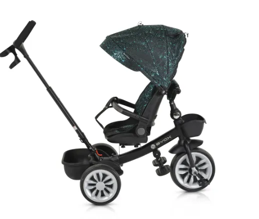 Funcții: Ghidon pliabil, Spătar reglabil, Scaun rotativ la 360°, Mâner detașabil, Poate fi folosită și ca bicicletă cu 3 roți