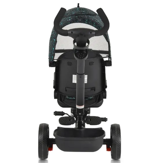 Scaunul tricicletei este echipat cu un scaun care poate să se rotească la 360 de grade și un spătar reglabil, care oferă confort și suport adecvat pentru copil. Mânerul reglabil permite părinților să direcționeze mișcarea roții din față pentru o gestionare mai ușoară.