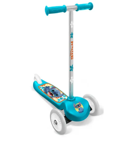 Trotineta STITCH cu 3 roți este alegerea perfectă pentru micii exploratori activi! Designul său stabil cu trei roți și platforma antiderapantă asigură fiabilitate și confort la fiecare plimbare. Rulmenții ABEC 5 și frâna de picior din spate fac ca direcția să fie lină și sigură, în timp ce mânerele anti-compresie adaugă un plus de confort. Datorită roților din față care urmează înclinarea ghidonului, trotineta este ușor de manevrat, asigurând copiilor plimbări active.