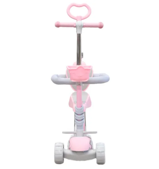 Roțile din față ale scuterului sunt iluminate, realizate din clorură de polivinil. Este fixat ferm de cadrul scuterului, folosindu-l, copilul poate folosi scuterul ca bicicletă de echilibru.