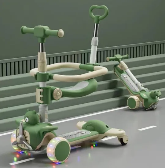 Trotinetă pentru copii 6 în 1 cu scaun, mâner parental, roți luminoase și muzică