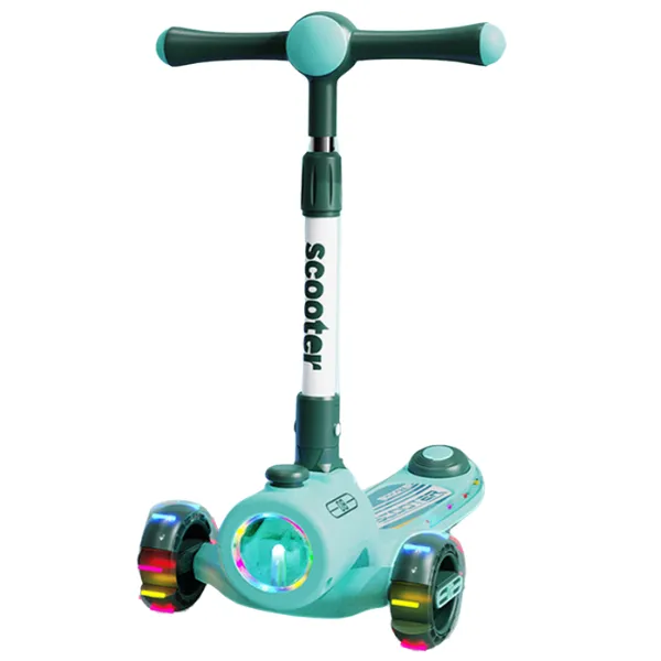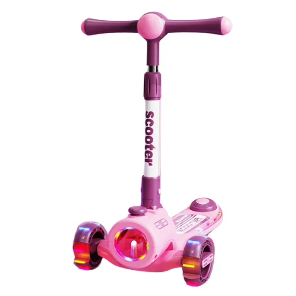 Trotinetă pliabilă cu trei roți, lumini LED și muzică destinată copiilor mici.