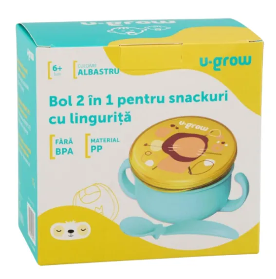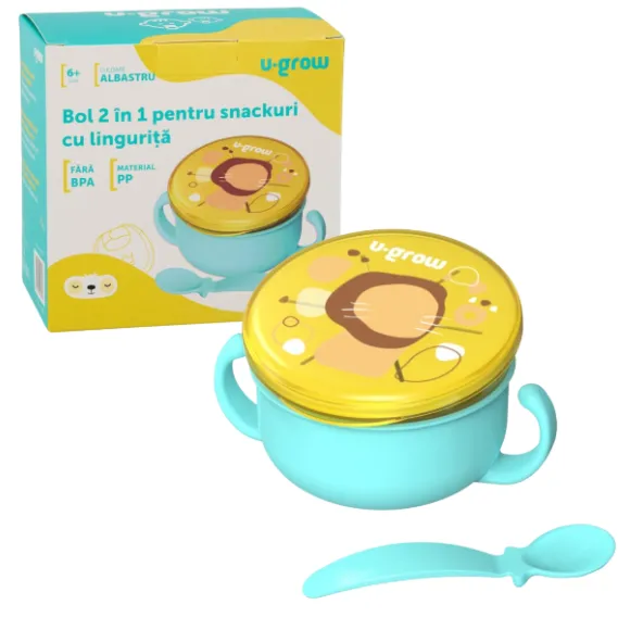 Bol 2 în 1 pentru snackuri cu linguriță, albastru