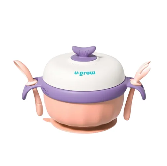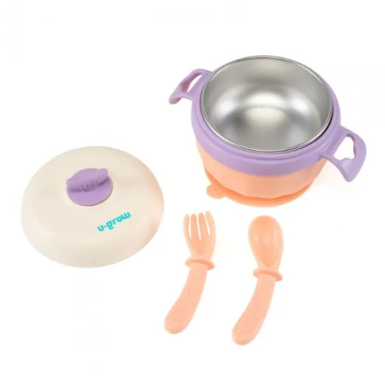 Bol termic U-Grow cu linguriță și furculiță, mov