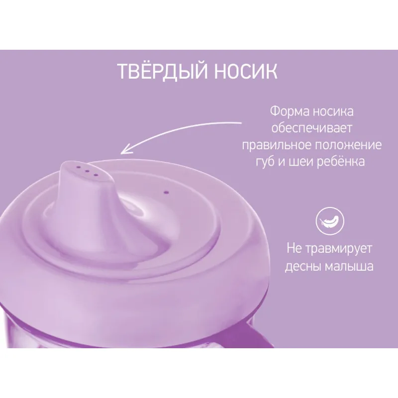 Forma ergonomică a duzei asigură poziția corectă a buzelor și gâtului copilului, iar capacul etanș previne scurgerea lichidului.