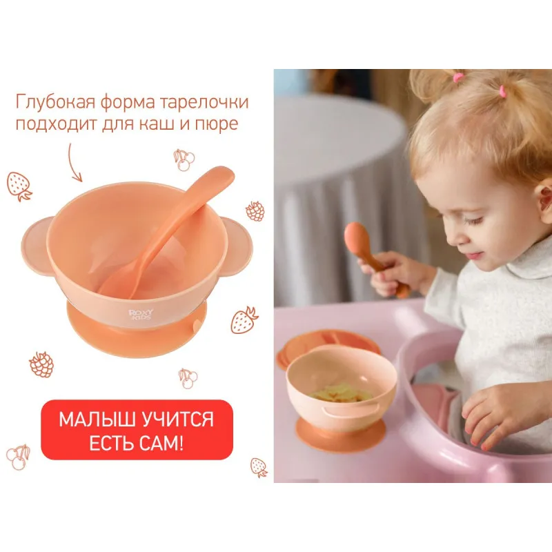 Farfuria pentru copii ROXY-KIDS cu ventuză va ajuta copilul să mănânce independent și să facă procesul de hrănire ușor și plăcut!
