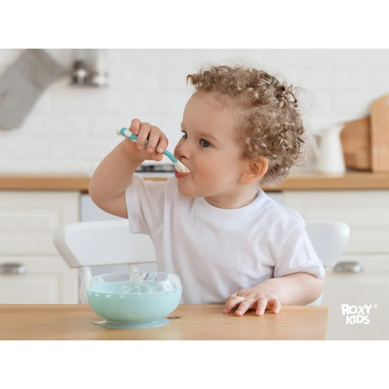 Pe măsură ce cresc, mânerele ustensilelor pot fi îndreptate pentru a-l învăța pe copil cum să țină corect lingura lui preferată.