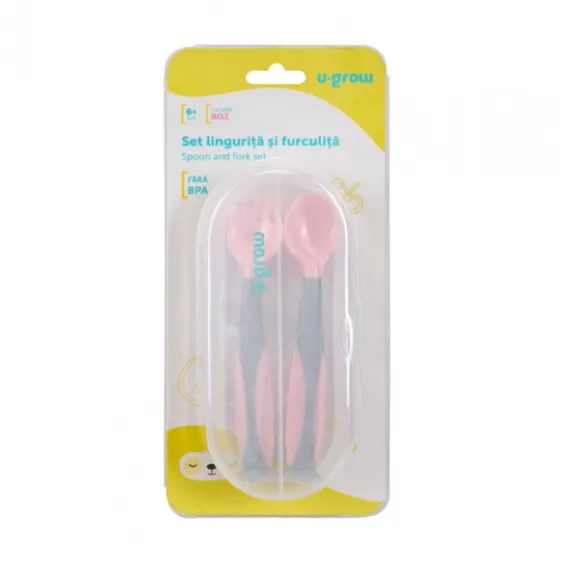 Set lingurita si furculita U-Grow, roz
